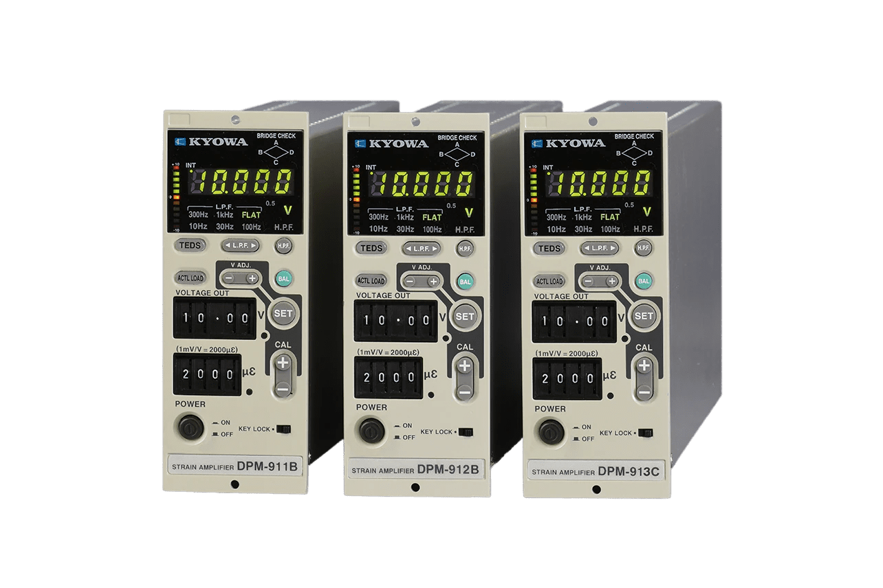 These strain amplifiers ensure highly stable and accurate measurements. Sensitivity can be easily set by simply configuring the input strain and output voltage through digital switches, thereby significantly improving work efficiency. A high-pass filter is also included to cancel out the effects of gradual gage/sensor temperature drift.